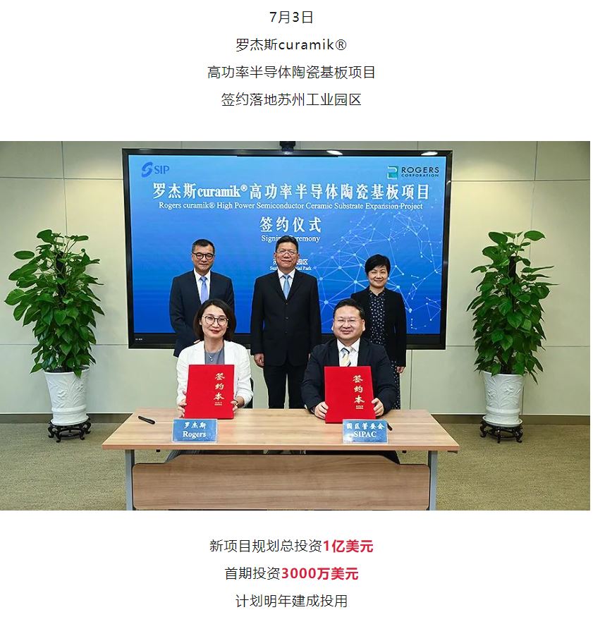 羅杰斯投資1億美金陶瓷基板項目落戶蘇州